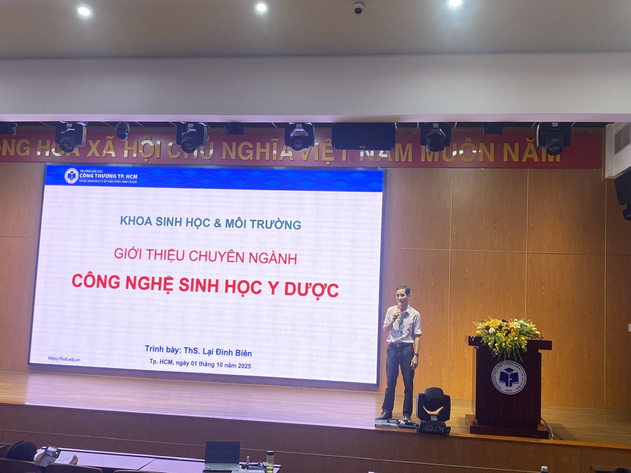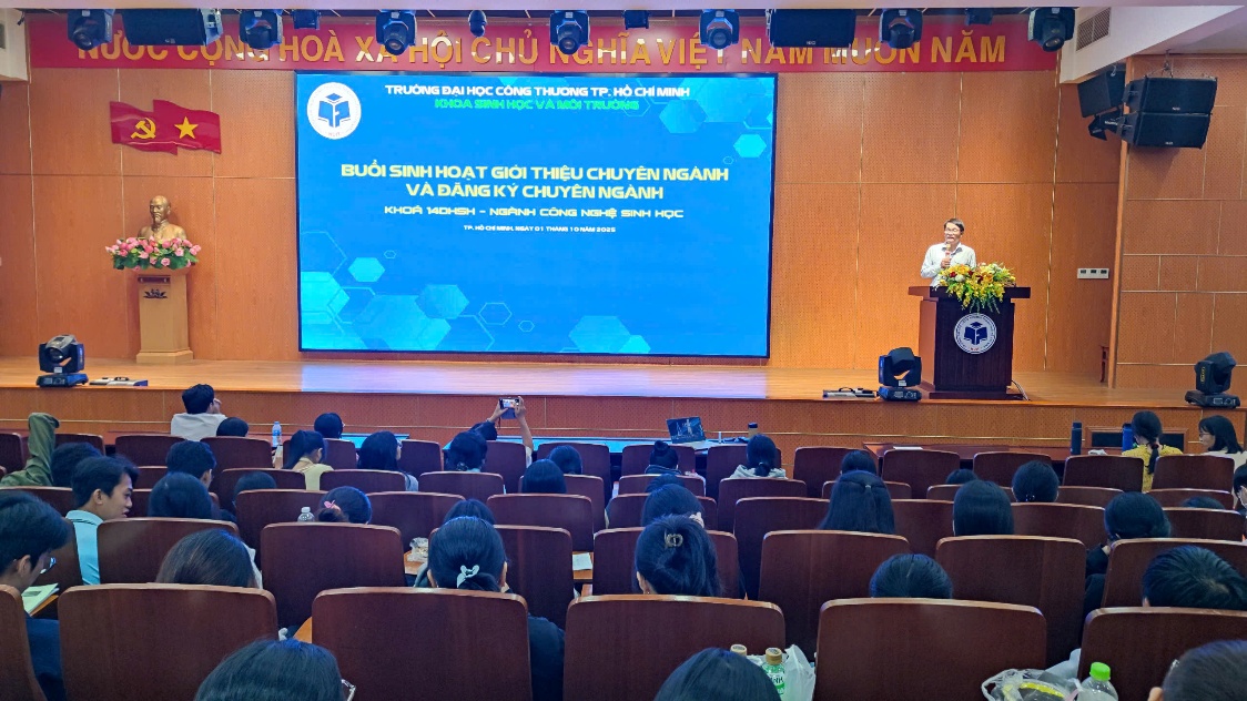 Tối ngày 01/10/2025, tại Hội trường C, Khoa Sinh học và Môi trường đã tổ chức buổi sinh hoạt định hướng chuyên ngành dành cho sinh viên khóa 14 ngành Công nghệ Sinh học.